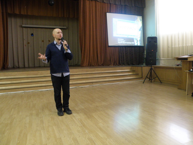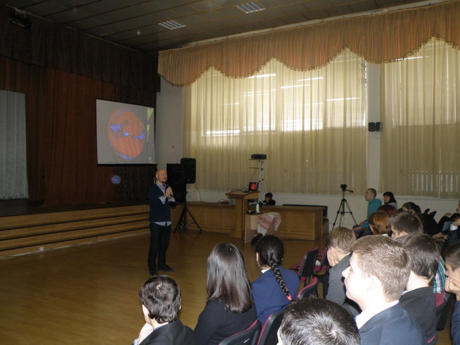 Олег Ізюменко виступив з лекцією - презентацією для учнів 9 - 11 класів. Перша частина виступу «Клімат «гаряча» тема» була присвячена одній з найактуальніших проблем сьогодення – клімату.