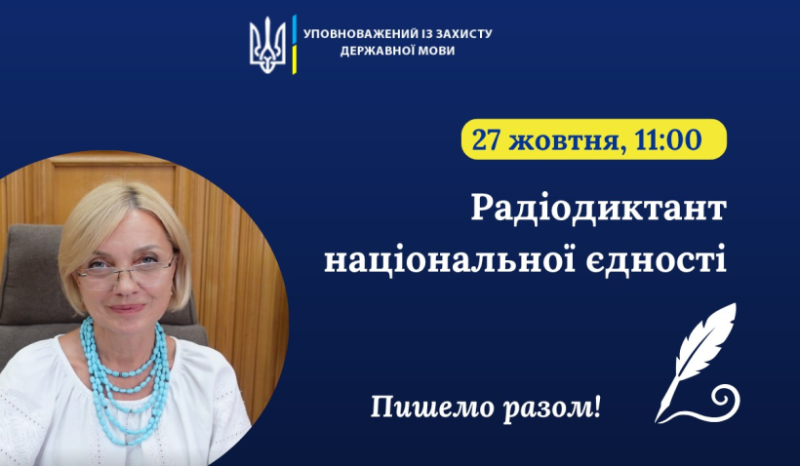 27 жовтня Уповноважена закликає долучитися до написання Радіодиктанту національної єдності