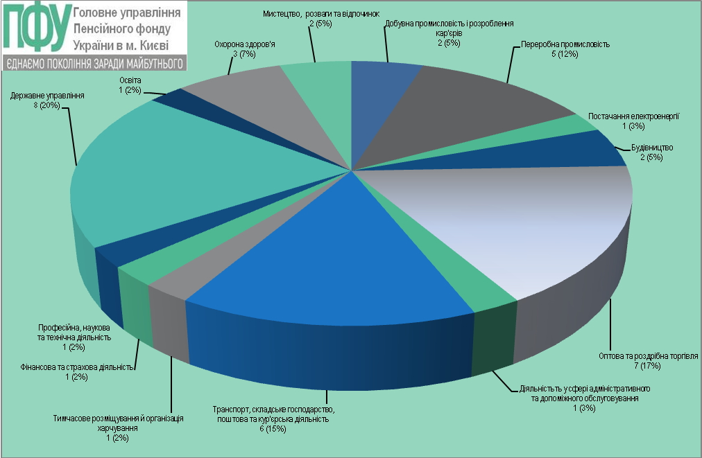 - «Оптова та роздрібна торгівля» – 7 осіб (17%) (ТОВ «Сільпо Фуд» (4 особи), ТОВ «АШАН Україна Гіпермаркет» (2 особи), ТОВ «ЕЛІТ-Україна»);