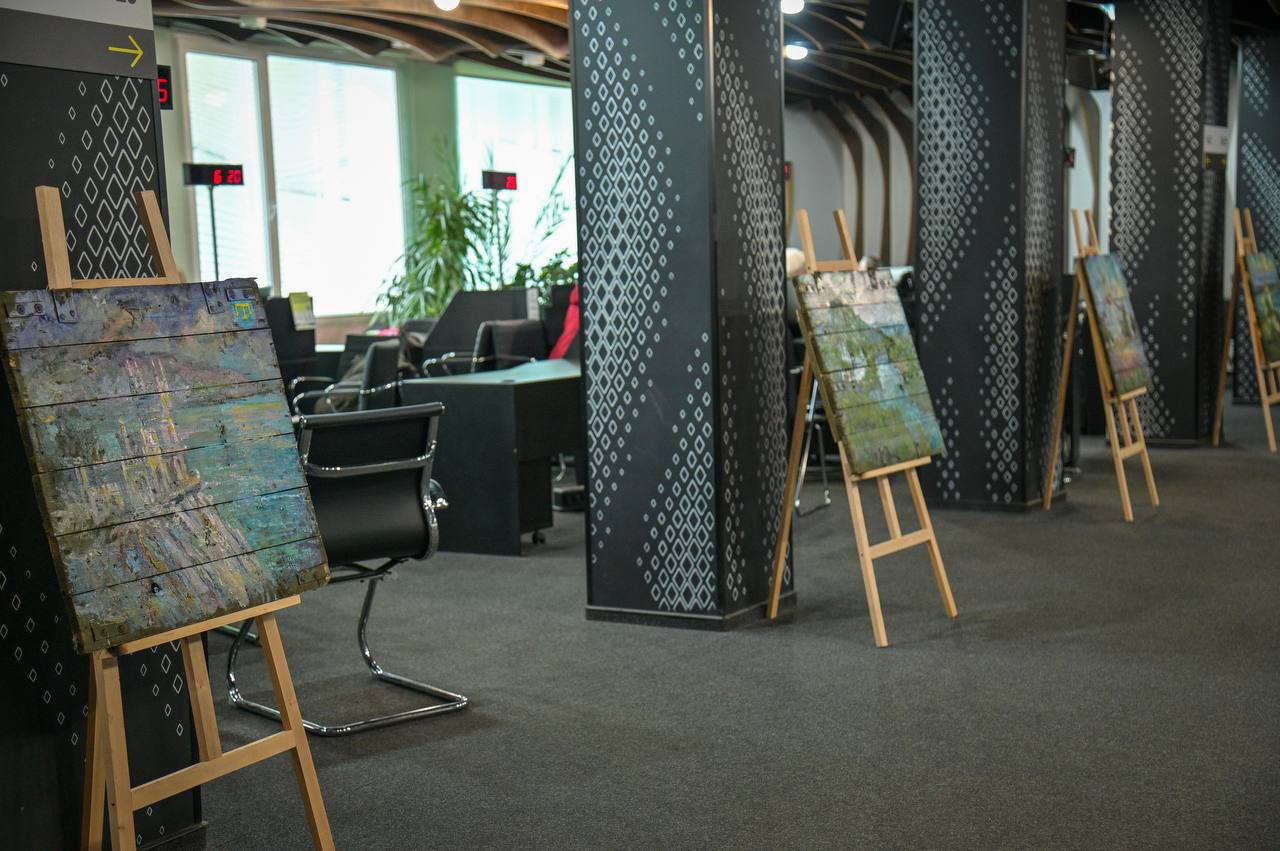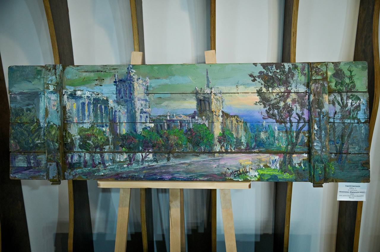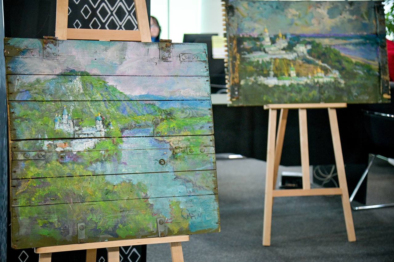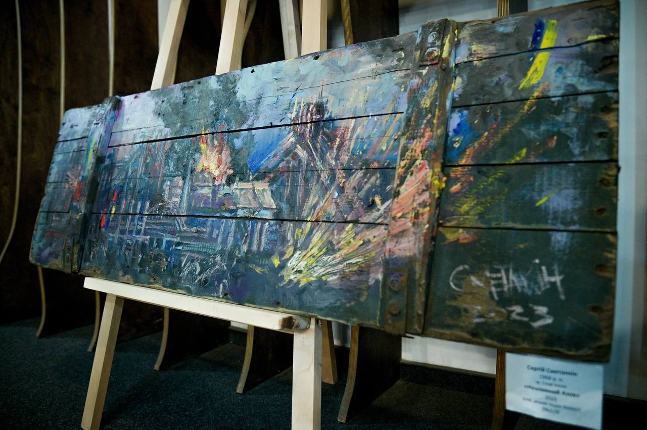 У Святошинському ЦНАПі відкрилася особлива експозиція робіт художника Сергія Сметанкіна. Серія «Незламні міста України» написана на кришках від боєкомплектів із Бахмута — місця, де війна залишила свої шрами, але водночас народила історії стійкості й відродження.