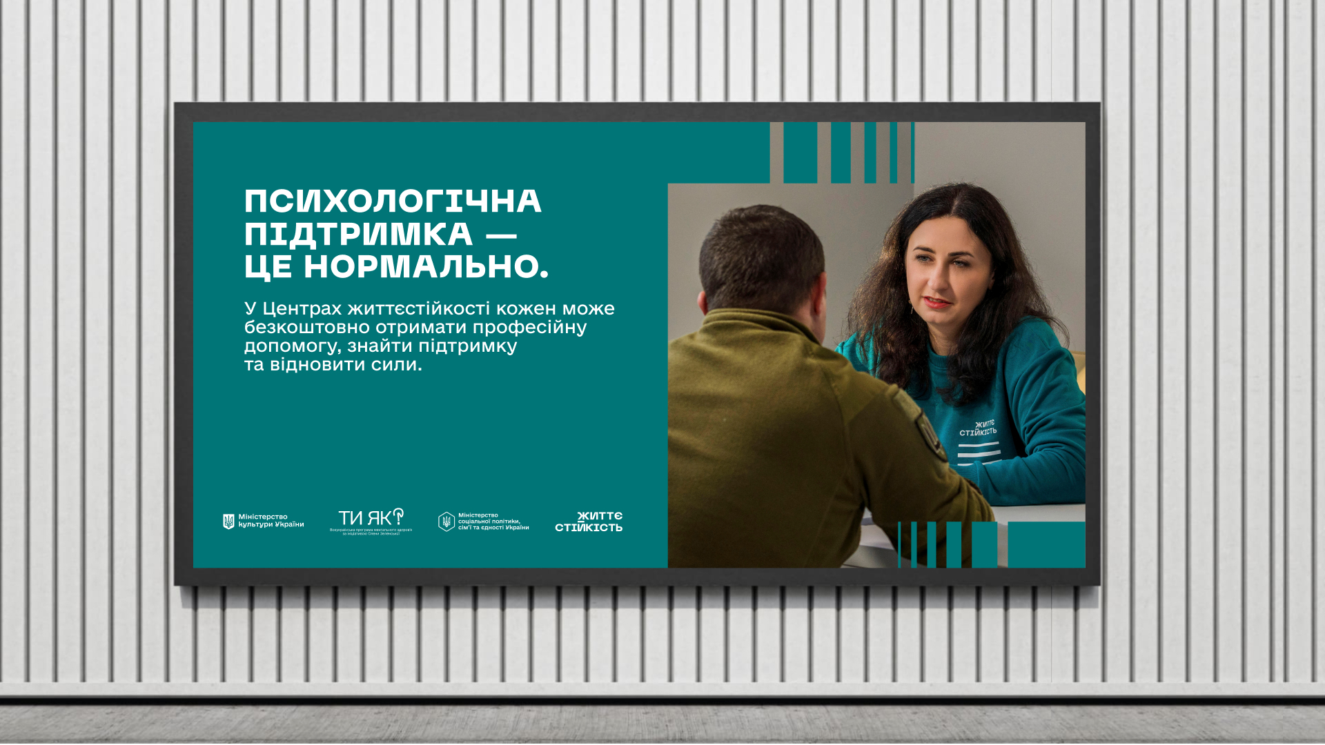 Міністерство культури України у співпраці з Міністерством соціальної політики, сім’ї та єдності України за результатами проведення мистецького конкурсу забезпечують проведення інформаційної кампанії щодо діяльності та функціонування центрів життєстійкості.