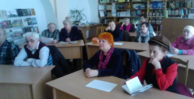 Цікаву інформацію та огляд літератури про виникнення і розвиток українського театру підготувала для присутніх завідувач бібліотеки Людмила Григорівна Ричек. Вона розповіла, що театральне мистецтво України бере початок з глибокої давнини в народних іграх, танцях, піснях та обрядах. Присутні з великим задоволення підхопили тему та говорили про велике значення мистецтва у житті людини, ділились думками про те, що людина сьогодні вже не може уявити собі життя без прочитаного роману, без нового кінофільму, без прем’єри в театрі… У мистецтві людина знаходить нові знання, відповіді на життєво важливі питання, заспокоєння від повсякденної суєти та насолоду.