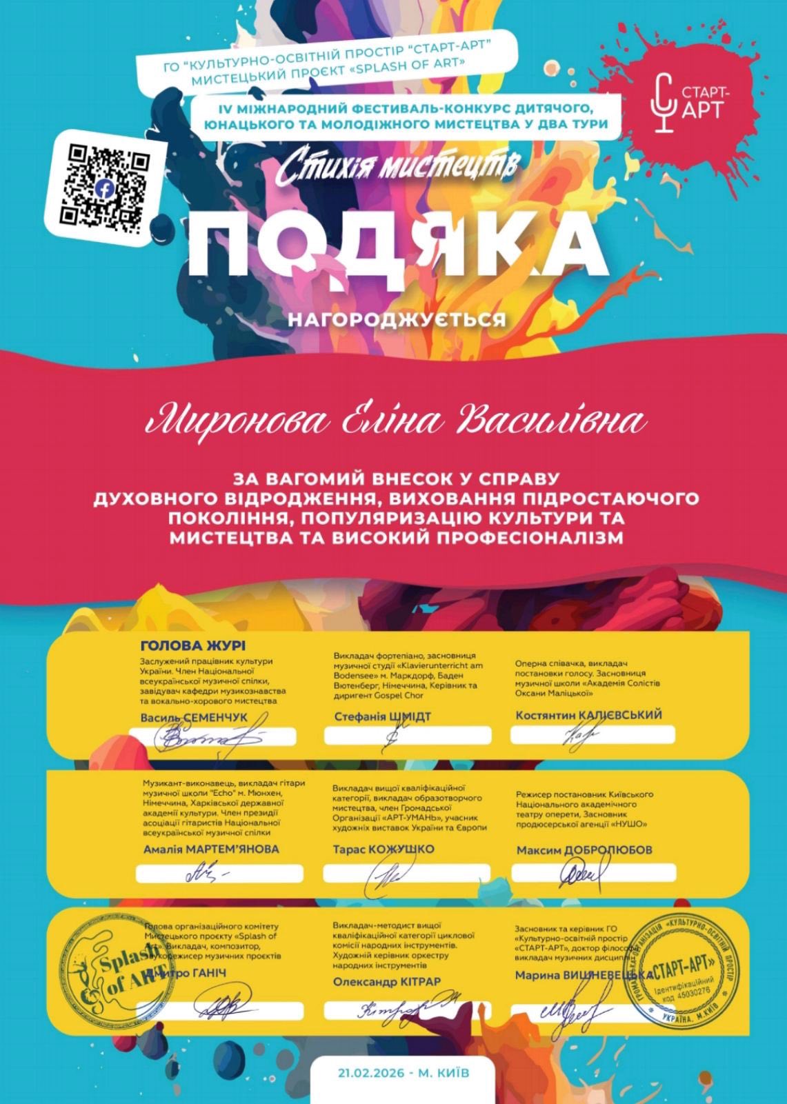 Бажаємо не зупинятися, сміливо мріяти та впевнено йти вперед — до нових мистецьких вершин!