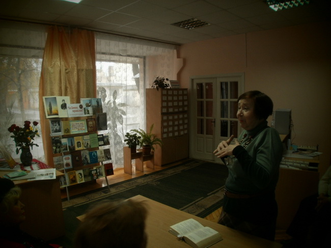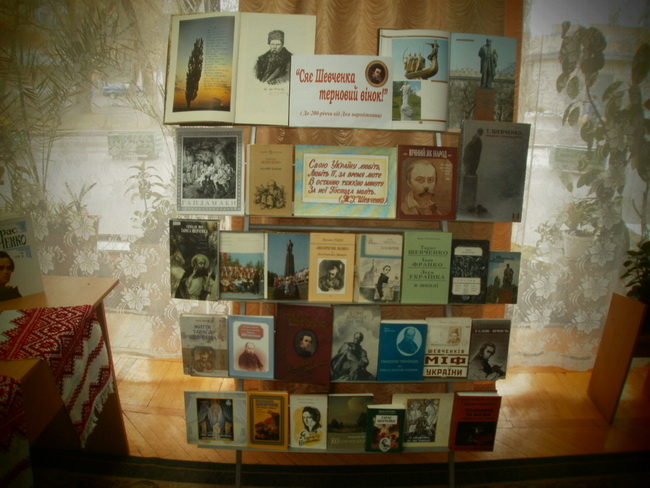 До уваги учасників зустрічі представлено книжкову виставку «Сяє Шевченка терновий вінок», на якій зібрано вислови відомих людей всього світу про Т.Г.Шевченка, література, присвячена біографічним та творчим сторінкам життя поета. У виконанні Коваль Марини Олександрівни, Братусь Ніни Василівни та Гончаренко Наталії Кузьмівни звучала поезія українських поетів: Є.Маланюка, М.Рильського, М.Палієнка та інших, які присвятили свої твори Т.Шевченку.