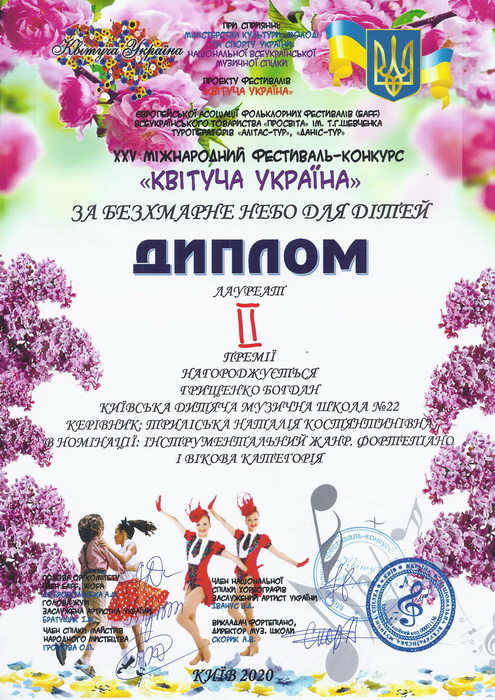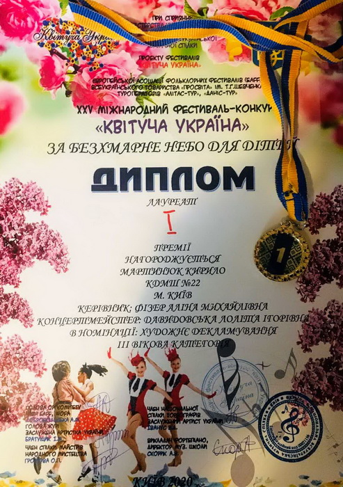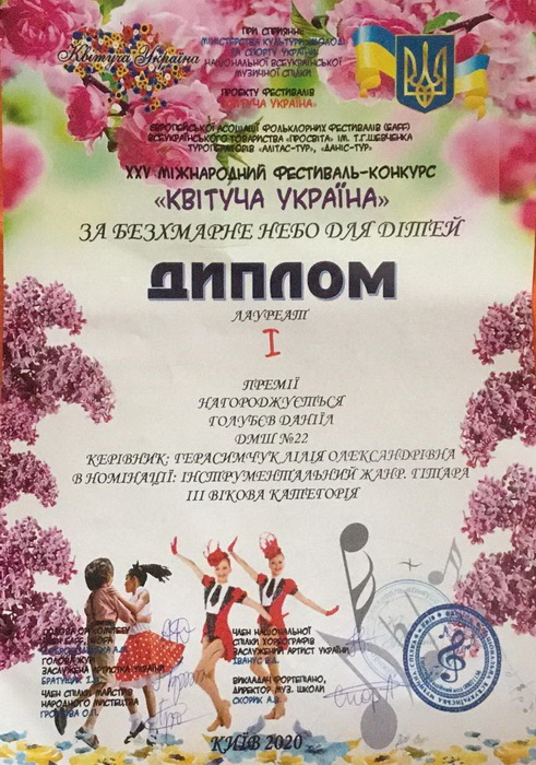 Чергові перемоги учнів КДМШ № 22 на Міжнародному дистанційному фестивалі-конкурсі «Квітуча Україна» (фото)