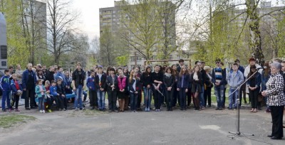 Вже традиційно розпочинаються чорнобильські заходи біля архітектурно-декоративного елементу, присвяченого прип’ятчанам, що на вулиці Якуба Коласа, 29 в Святошинському районі, які щороку проходять 25 квітня.