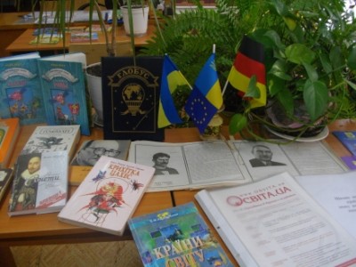 Цікавою та змістовною була виставка дитячих малюнків учнів 5-7 класів «День Європи в Україні» та творчих робіт учениць 7-Б класу Додонової Марії, Ніколаєнко Юлії та Степанової Ірини.