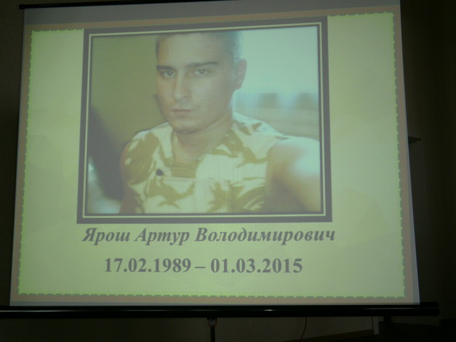 Під час урочистостей хвилиною мовчання вшанували пам'ять випускника школи Артура Яроша, який загинув у березні 2014 року під час перебування в зоні АТО.