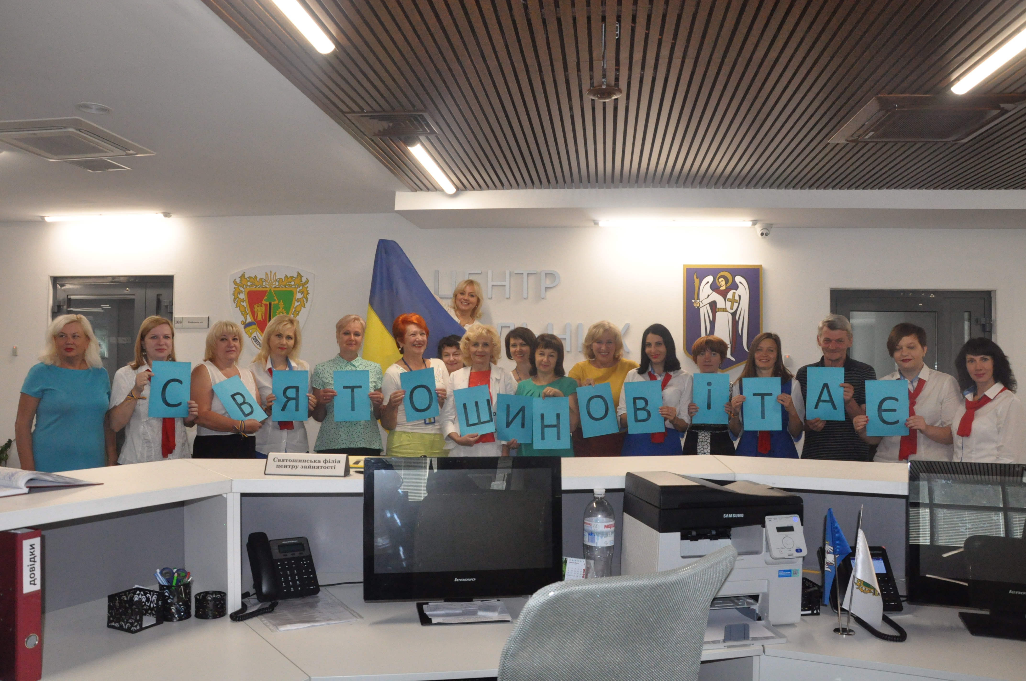 Не залишились осторонь цього свята і фахівці Святошинської районної філії Київського міського центру зайнятості. Напередодні працівники взяли активну участь у різноманітних заходах, які приурочені до 27-ї річниці незалежності України та Дня Державного Прапора України.