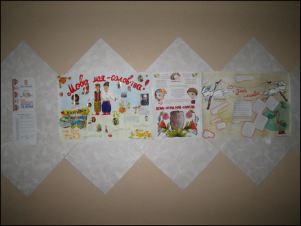 Щоб зануритися в атмосферу свята школу прикрасили стінгазетами та листівками з висловлюваннями українських поетів та письменників, а також з певними мовними правилами, на які слід звернути увагу.