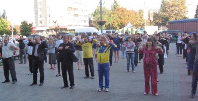 Дрес-коду сьогодні для працівників районної адміністрації не було, вірніше, його було змінено з ділового костюма на спортивний. Дехто з працівників, особливо жіночої статі, звісно, не зміг наважитися різко змінити стиль робочого одягу, але і поважні пані, і шановні панове дисципліновано вийшли шикуватися на зарядку.
