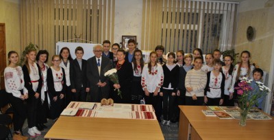 захід за участі представників літературно-мистецької еліти нашого району. Завідувач бібліотеки Тетяна Михайлівна Кравченко запросила на зустріч з учнями середньої загальноосвітньої школа № 235 ім. В. Чорновола відомого педагога, автора багатьох шкільних підручників з української мови, професора Івана Пилиповича Ющука, співачку, заслужену артистку України Тетяну Негрій, Генерального директора Української студії документальних, науково-популярних та музичних фільмів «АРТАНІЯ», Президента Асоціації працівників культури та мистецтва України Дмитра Ломачука.