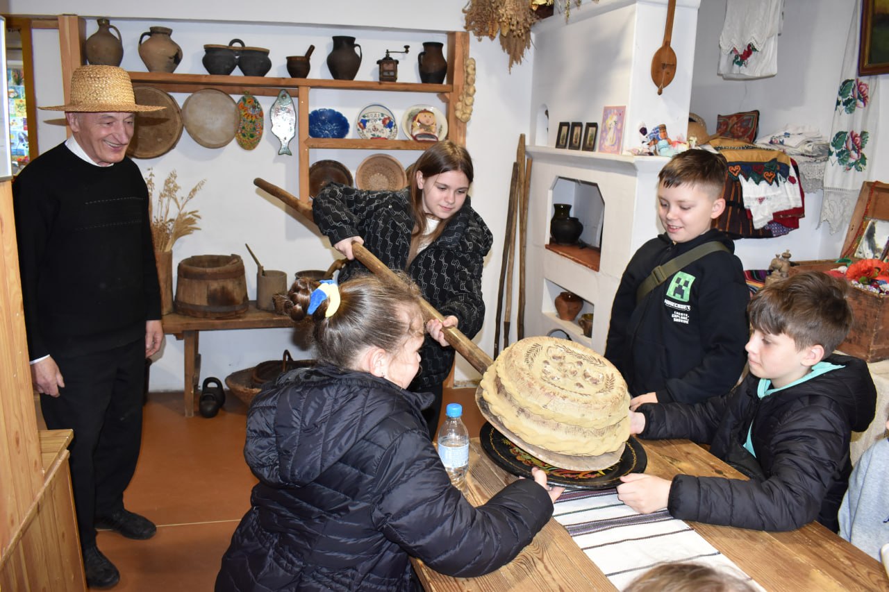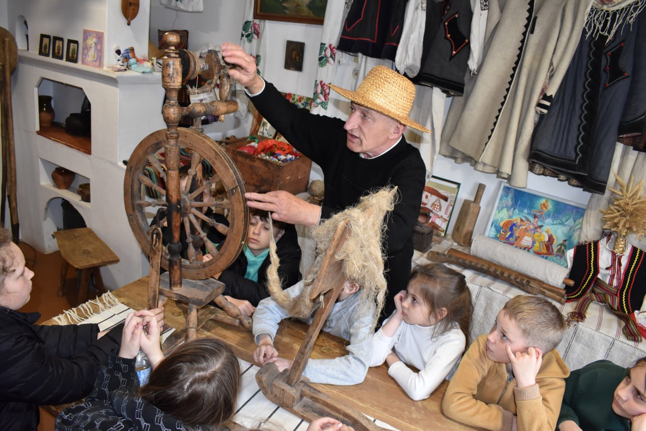 Під час екскурсії діти поринули в атмосферу минулого: дізналися, як у Борщагівських селах із льону виготовляли нитки за допомогою прялок, як ткали одяг, випікали хліб та вели повсякденний побут.