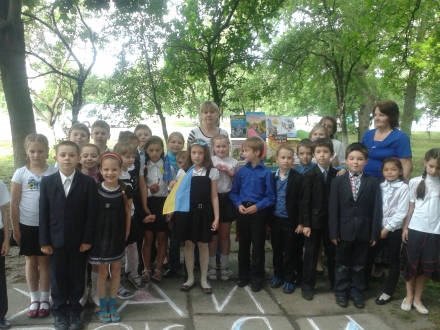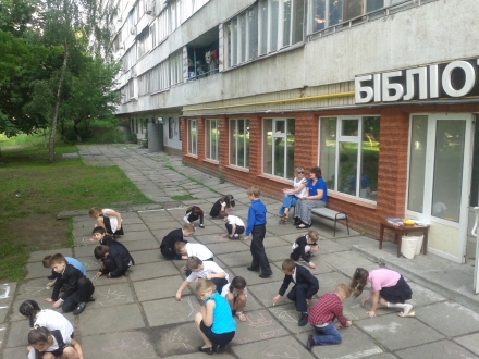 Гучний гомін, веселий сміх та радісні вигуки дітвори біля бібліотеки та яскрава книжкова виставка, прикрашена повітряними кульками, яку розгорнули прямо в дворику бібліотеки, де і відбувався захід, привабили увагу батьків та дітей, які прогулювались та грались на дитячому майданчику поруч з бібліотекою. Такою численною та дружною командою діти та дорослі на бібліотечному подвір'ї написали головний девіз свята «Хай завжди буде сонце» – заклик до миру для всіх дітей планети.