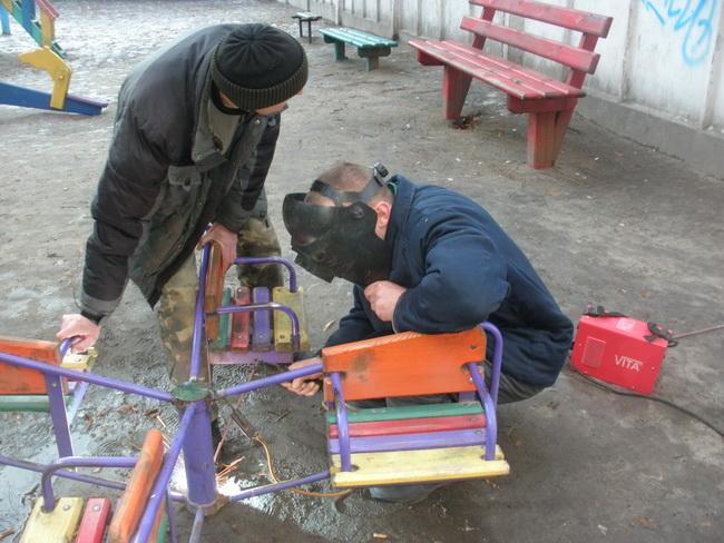 Під час щоденного огляду дитячих майданчиків на підпорядкованій території КП РЕО-10, майстром технічної дільниці Покотило О.М. виявлено пошкодження металевого елементу конструкції дитячої каруселі на майданчику біля будинку 4/2 по вулиці Кулібіна. Одразу були прийняті міри і працівниками виробничої дільниці терміново було проведено зварювальні роботи елементу конструкції. Це дасть можливість попередити травмування дітей і безпечного користування дитячим майданчиком малюками.