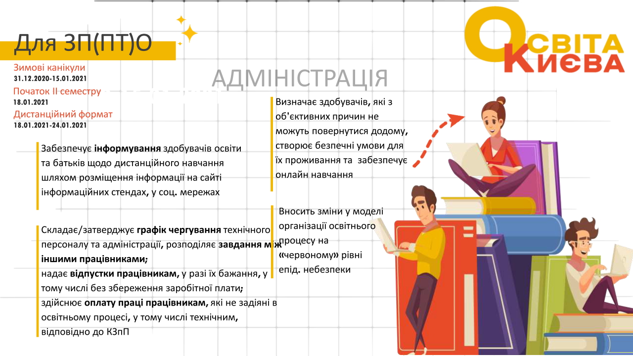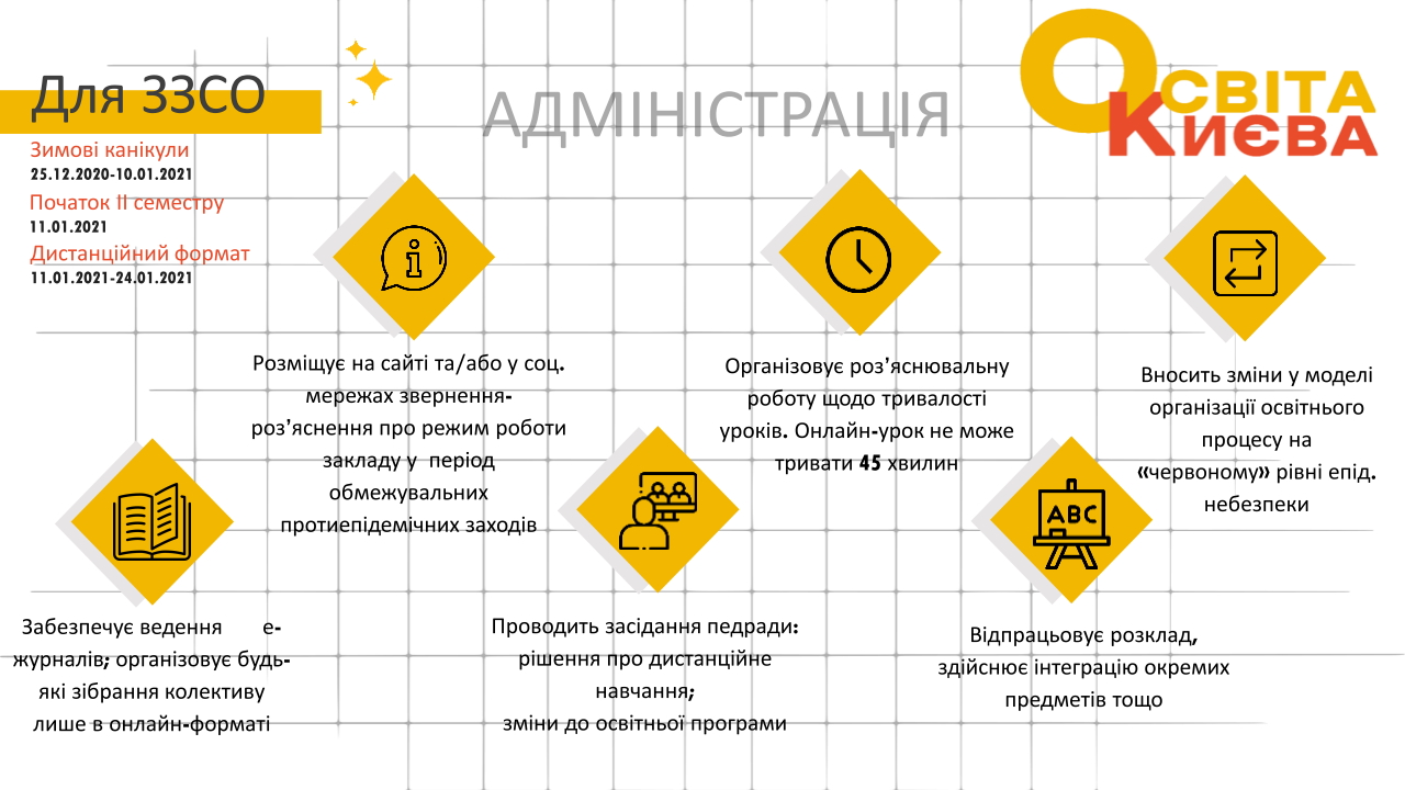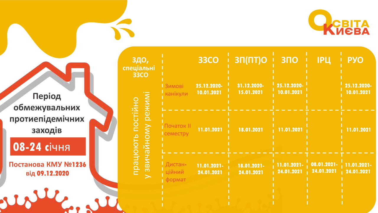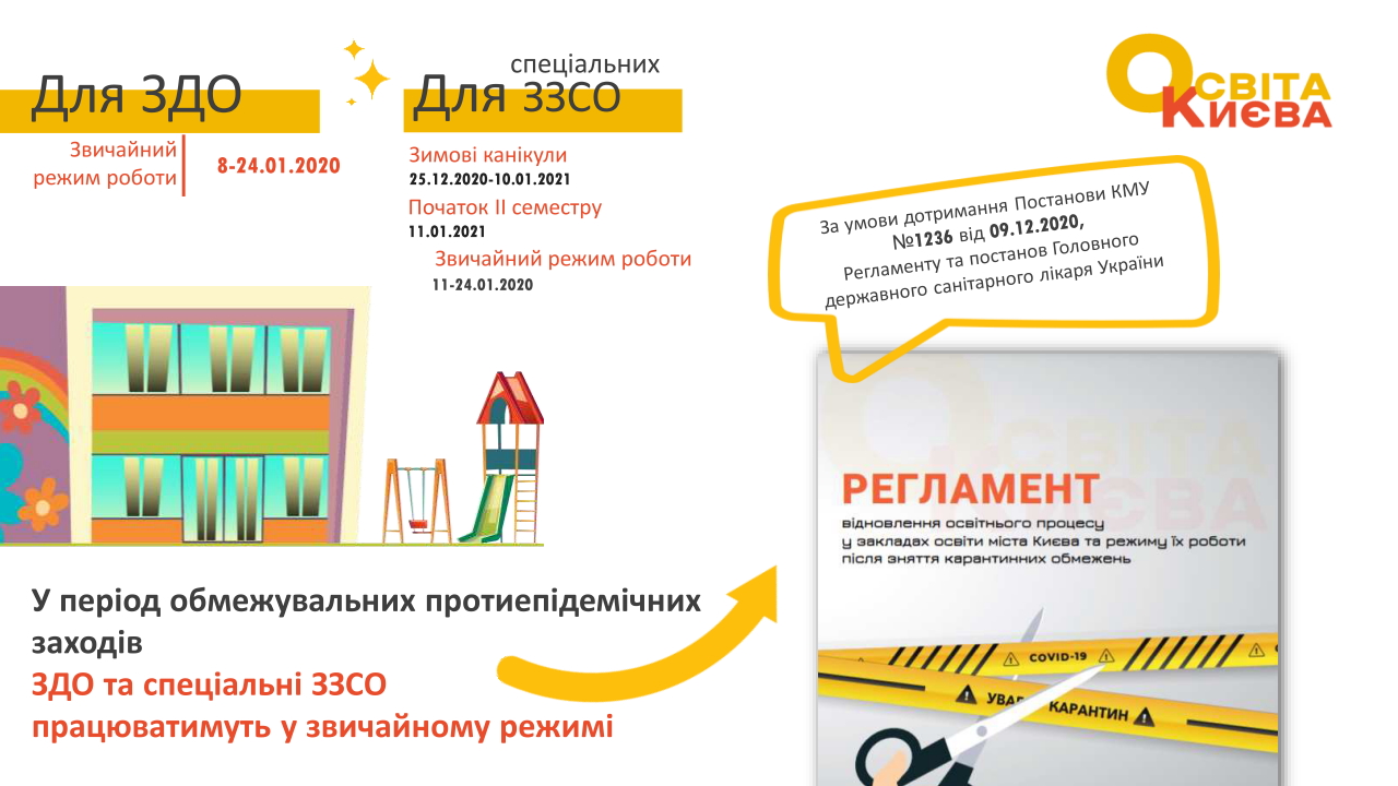 Після зимових канікул, із 11 січня 2021 року, освітні заклади Києва працюватимуть у дистанційному форматі. У звичайному режимі залишаться працювати лише дитячі садочки. Департамент освіти і науки КМДА оновив рекомендації щодо навчання в дистанційному форматі для всіх учасників освітнього процесу.