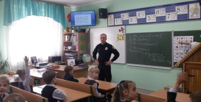 провів інтерактивний урок з вивчення та повторення правил поведінки пішохода й інших правил дорожнього руху в рамках реалізації профілактичної програми «Школа і поліція». Діти уважно слухали гостя та із задоволенням відповідали на запитання щодо правил дорожнього руху.