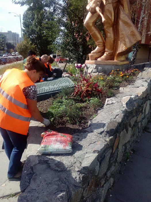 Працівники КП УЗН Святошинського району постійно піклуються про території навколо пам’ятників та пам’ятних знаків, які знаходяться на балансових територіях. Наразі озеленювачі дільниці № 6 провели чергове прополювання квітника, вигрібання листя, сміття та чищення доріжок від трави біля пам’ятника Героям Великої Вітчизняної війни на вулиці Академіка Єфремова (метро «Академмістечко»).