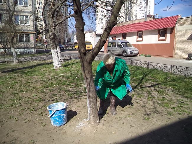 Весняною побілкою дерев зайняті і робітники з комплексного прибирання та утримання будинків з прилеглими територіями КП «РЕО-10».