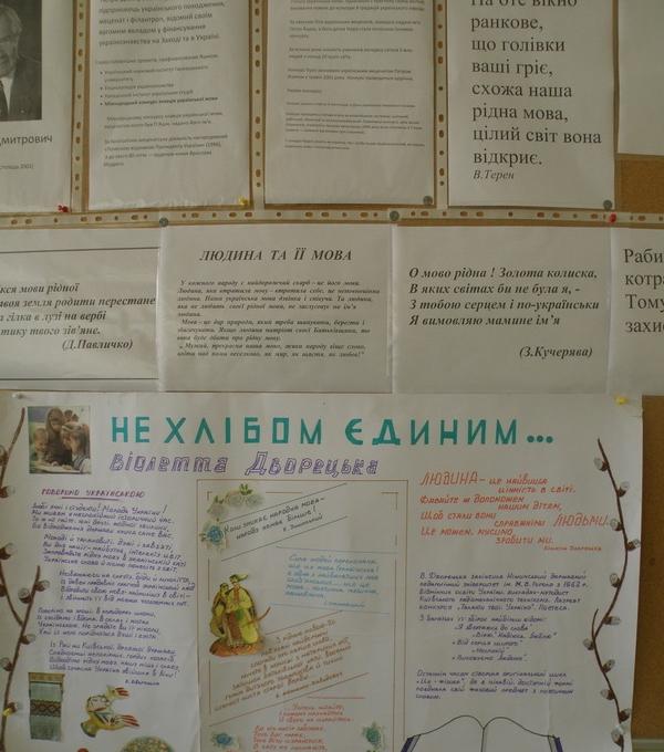 Учні 7-Б класу з вчителем української мови Ярошик Л.С. грали в мовознавчу гру «Слово до слова - складається мова». Для учнів 11-А класу вчитель Руденко Т.В влаштувала «Філологічну еврику». Крім цього, разом зі своїми вихованцями вона організувала і виставку плакатів до Дня рідної мови.
