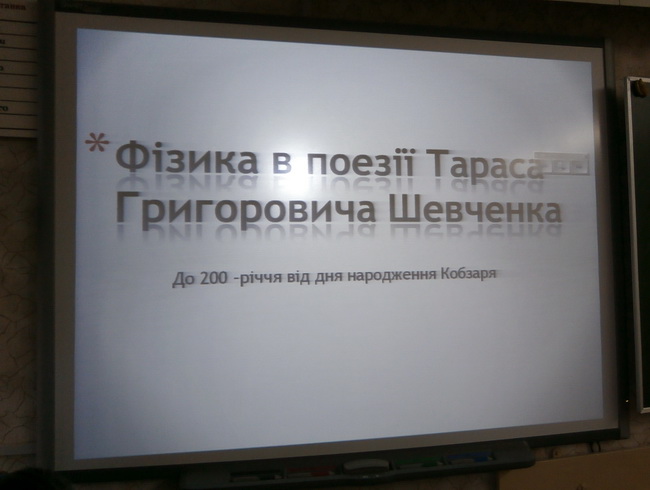 В рамках святкування 200-річчя від дня народження Тараса Григоровича Шевченка, учителем фізики СЗШ № 235 ім.В.Чорновола Голобородько Катериною Василівною проведено відкритий бінарний урок у 11-А класі на тему: «Фізика у поезії Тараса Григоровича Шевченка».