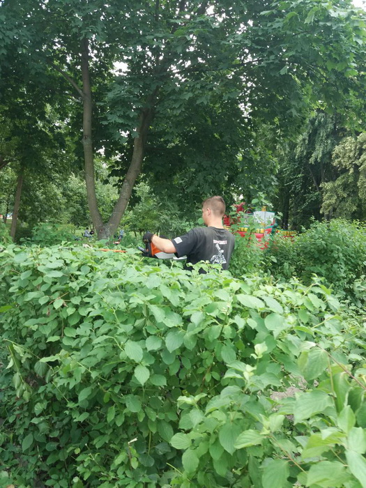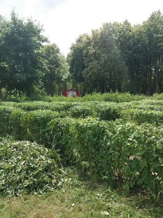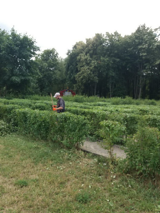 Формувальна обрізка лабіринту з декоративних кущів у парку «Юність» (фото)