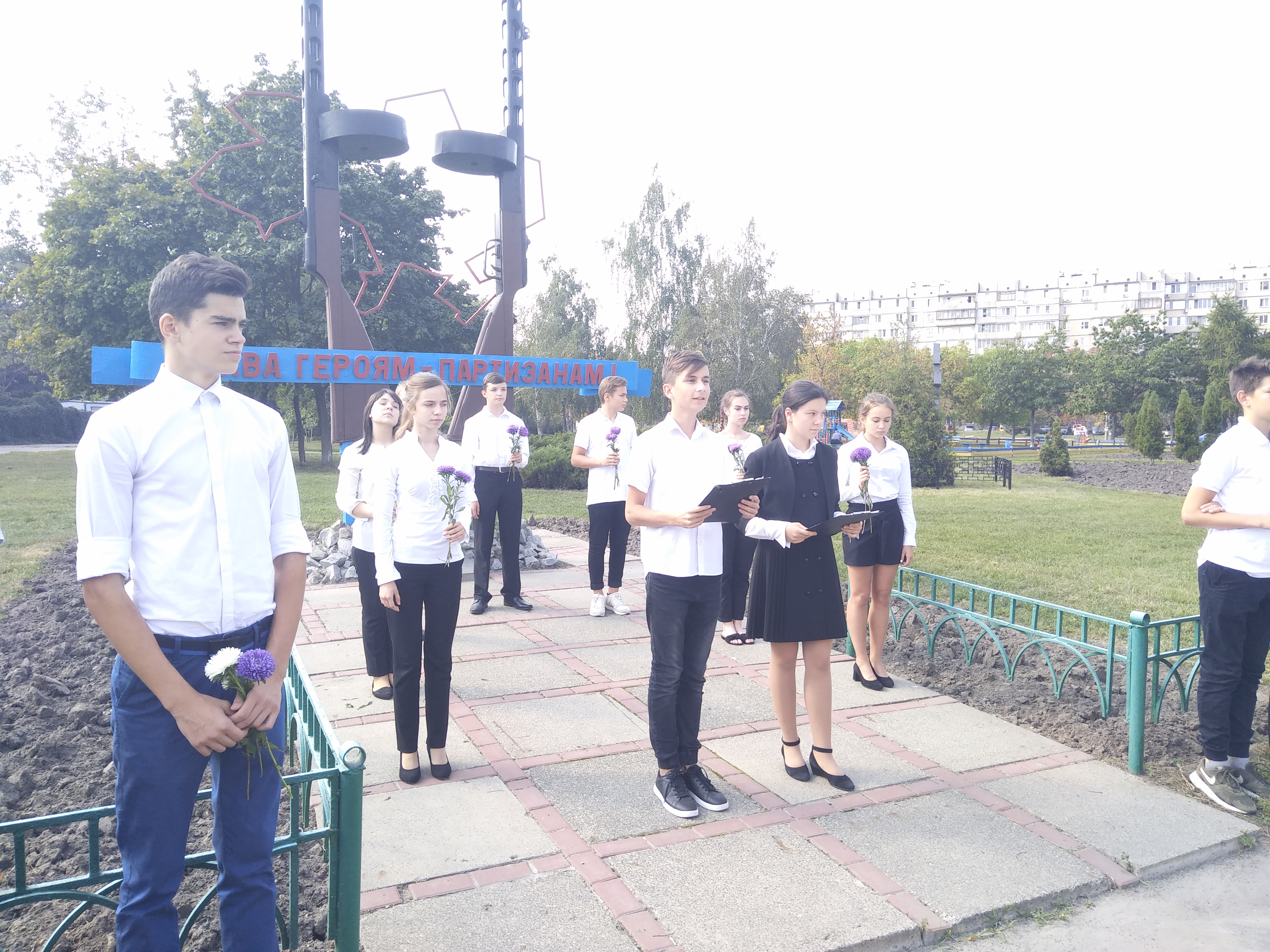 З нагоди свята сьогодні у нашому районі відбулося вшанування пам’яті учасників партизанського руху. Заради виховання поваги, шанобливого ставлення до учасників Другої світової війни, любові до рідного краю, прагнення бути патріотом своєї держави, усвідомлення значимості здобутої перемоги для українського народу та величного вкладу в неї кожного ветерана учні 9-А класу провели вахту Пам’яті біля пам`ятного знаку «Слава героям-партизанам України!» (вул. Григоровича-Барського). Для школярів освітнього закладу № 254 це завжди почесна та зворушлива подія. А місце події – вічний пам’ятник невмирущої партизанської слави.