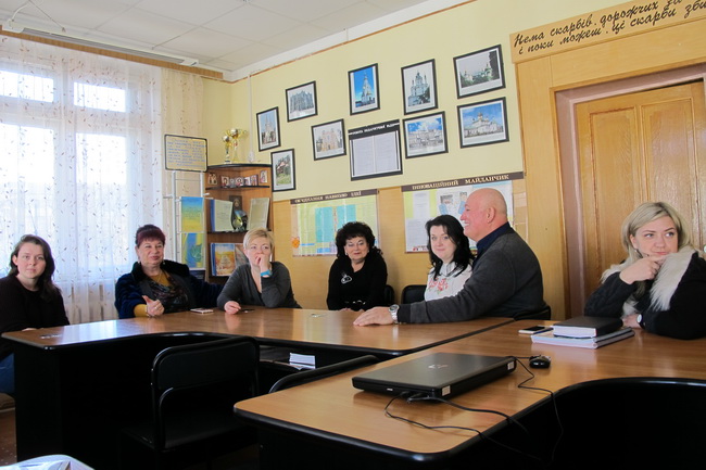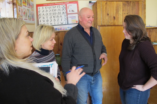 28 березня педагогічний колектив освітньо-виховного комплексу гостинно зустрів волонтерку із Лондона Робін Бьордж в стінах рідного закладу. Зустріч за круглим столом закінчилася обговоренням та плануванням позаурочної роботи в рамках проекту.