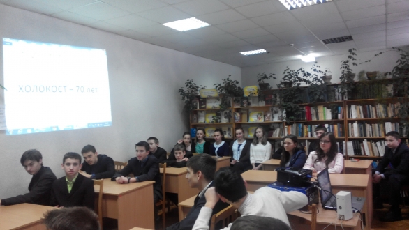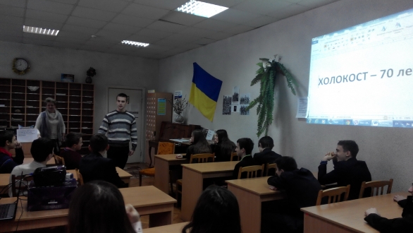 Учасники зустрічі мали можливість переглянути документальний фільм «Голокост – пам'ять заради майбутнього» з якого дізналися про те, що саме в концтаборі «Аушвіц-Біркенау» фашисти вперше випробували отрутний газ «Циклон Б», знищивши у вигляді експерименту 600 радянських військовополонених; присутні на власні очі побачили світлини та малюнки дітей, які разом з батьками терпіли страшні муки. Після перегляду фільму учні згадали страшні факти трагедії Бабиного Яру, де під час німецької окупації Києва у 1941-1943 роках відбувалися масові розстріли німецькими окупантами мирного населення і радянських військовополонених; євреїв та циган – за етнічною ознакою.