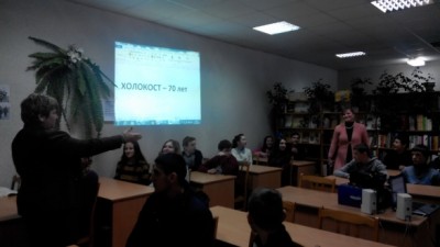 До Дня пам’яті у Центральній районній бібліотеці Централізованої бібліотечної системи «Свічадо» відділу культури та охорони культурної спадщини Святошинської районної в місті Києві державної адміністрації проведений бібліотечний лекторій «Голокост - пам'ять заради майбутнього». Зустріч з координатором з питань Голокосту в Україні - Крижанівською Наталією Олександрівною організувала для учнів 9-х класів Спеціалізованої школи №76 ім. О.Гончара та загальноосвітньої школи №222 провідний бібліотекар Центральної районної бібліотеки Світлана Доскальчук. Вже другий рік поспіль Світлана Степанівна координує та організовує роботу клубу правової освіти «Юридичний компас», в рамках якого обговорюються теми основних засад суспільної моралі та відбуваються зустрічі з цікавими людьми, лекції правової та історичної тематики.