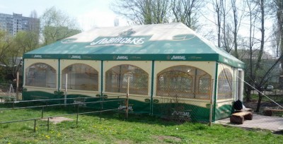 До чого тільки не вдаються підприємці задля скорої наживи. Щоб зберегти свою власність і уникнути демонтажу незаконної споруди, один із таких підприємців вирішив заощадити і вести свою незаконну реалізацію алкогольними напоями під тентом який і розташував біля зеленої зони, недалеко від школи по вулиці Прилужній. Та такі протиправні дій не залишились поза увагою працівників відділу контролю за благоустроєм Святошинської районної в місті Києві державної адміністрації. Після тривалих перемовин та роз’яснень, підприємець самостійно прибрав свою літню споруду і забрав весь товар.
