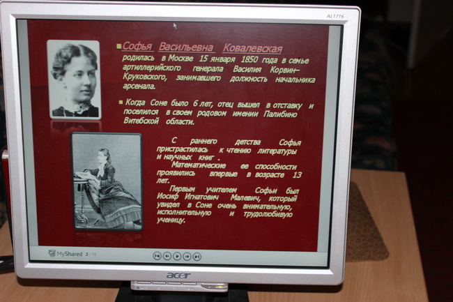 З представлених інформаційних джерел користувачі дізнались про цікаві факти з біографії, наукової і літературної діяльності С.В. Ковалевської. Для багатьох читачів стала відкриттям інформація про письменницький дар великого математика. Презентовані електронні матеріали дали змогу доступу до електронних ресурсів, на яких розміщені повні тексти творів С.Ковалевської. Всі охочі отримали можливість переглянути повісті «Спогади дитинства», «Сестри Раєвські» та інші твори С. Ковалевської.