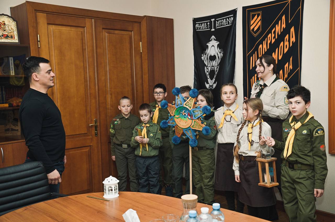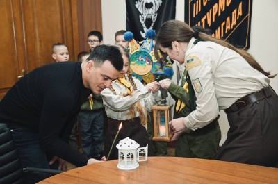 Голова Святошинської РДА Георгій Зантарая мав честь прийняти Вифлеємський вогонь миру — символ, який щороку нагадує про найважливіше: тепло між людьми, підтримку й надію