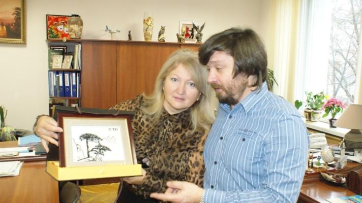 Керівник Народного ансамблю танцю «Вітамінчики» Олег Мельник передав голові Святошинської районної в місті Києві державної адміністрації пам’ятний сувенір із «Піднебесної» (фото)