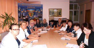 Присутніх було поінформовано про стан підготовки закладів до нового навчального року, ігрових майданчиків, особливо рухомого обладнання (за результатами перевірки сектором з питань охорони праці Святошинської РДА).