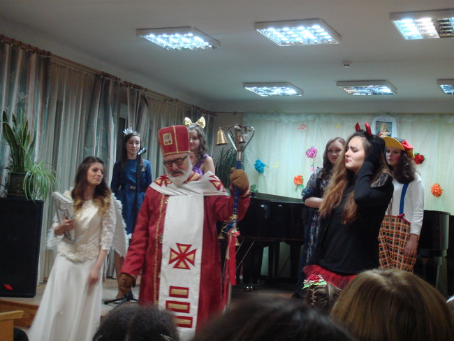 У сценічно- музичному дійстві звучали вірші та пісні, присвячені Святому Миколаю.
