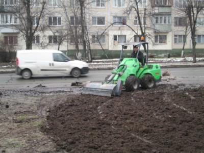 Кипить робота у сквері на перетині просп. Л. Курбаса та вул. Героїв Космосу (фото)
