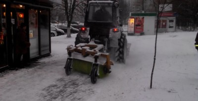Прибирання снігу зупинках громадського транспорту й тротуарах, які закріплені за підприємствами корпорації «Київавтодор», здійснюють 55 бригад із ручного прибирання у складі 403 осіб.