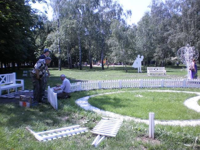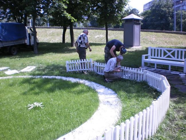 Минуло зовсім небагато часу від створення чергового шедевру працівників зеленого господарства, а невідомі особи вже зламали декоративну огорожу та пошкодили лави.