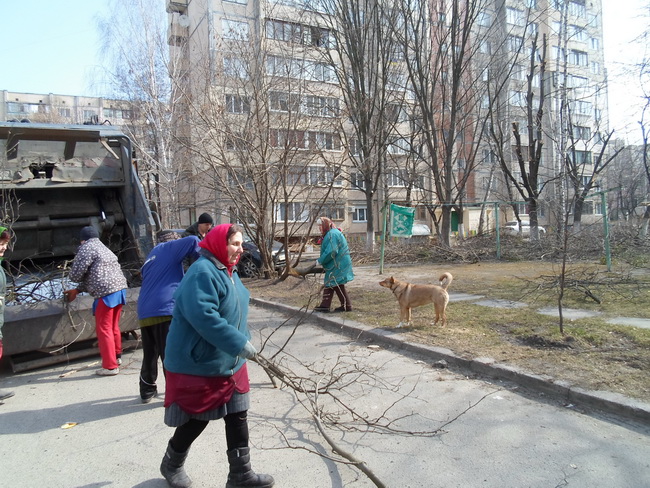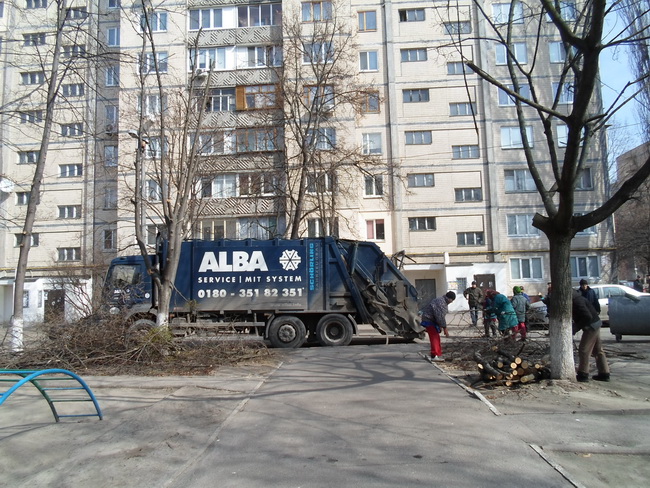 Працівники комунального господарства «ЖЕД»-5 згідно графіку на прибудинкових територіях житлових будинків вул. А. Кіпріанова, 6, 6-А (біля дитячого майданчику), проспект Л. Курбаса,4, провели санітарне очищення від аварійних, фаутних сухостійних та перестійних дерев, обрізка омели. Роботи виконувались спецтехнікою наданою комунальним підприємством «Керуюча компанія з обслуговування житлового фонду Святошинського району м.Києва».
