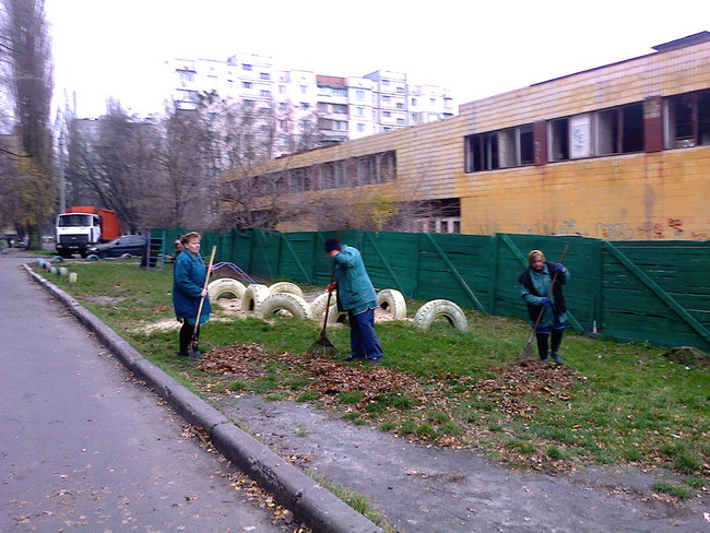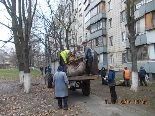 КП «РЕО 7. Двірниками технічної дільниці № 1 комунального підприємства «РЕО-7» проводиться прибирання від опалого листя прибудинкової території житлового будинку № 23-а по вулиці Генерала Наумова. Утилізацію зібраного листя забезпечує тракторист підприємства Дрозд Анатолій Лаврентійович.