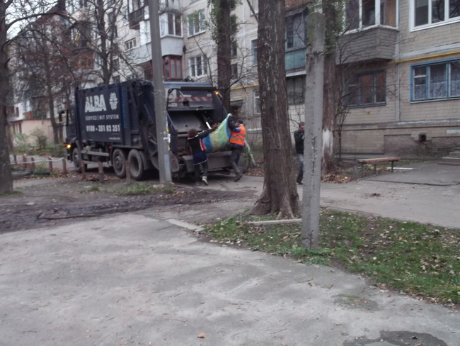 КП РЕО-5. За допомогою спецтехніки, наданої ПрАТ «Київкомунсервіс», в черговий раз з прибудинкової території КП РЕО-5, а саме житлових будинків №4 та 2/13 по проспекту Леся Курбаса, було вивезено негабаритне сміття.