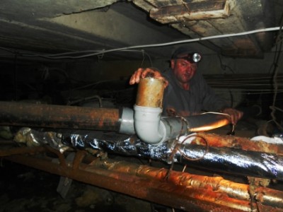 Комунальні працівники замінили трубопровід каналізаційної системи в підвальному приміщенні
