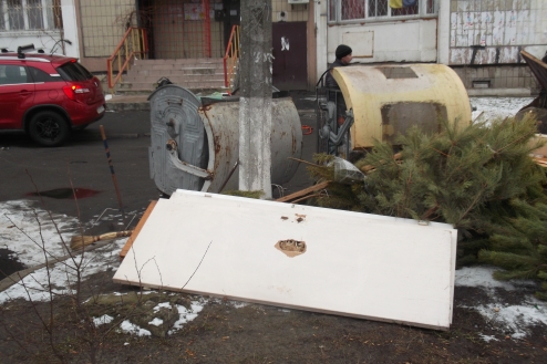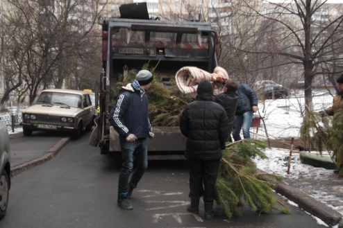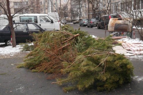Переважну частину зібраних за допомогою спеціалізованого транспорту «Європрес» відходів складає головний атрибут нещодавніх свят – купи пожовклих ялинок, що після Нового року прикрашають мало не всі двори міста.