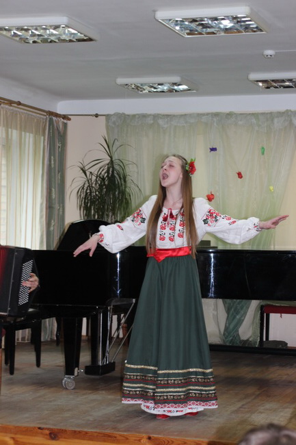 Також учні класу народного співу (викладач Гаркуша Валентина Іванівна, концертмейстер Грузинський Максим Артемович) вітали присутніх такими музичними дарунками: українська народна пісня «Висока верба» - Шаблевська Дарина, українська народна пісня «На калині мене мати колихала» - Рибарук Анастасія, українська пісня - дует у складі Стадніка Павла і Ющенка Олександра, Віночок українських пісень - ансамбль народної пісні.