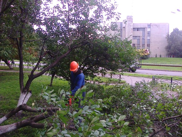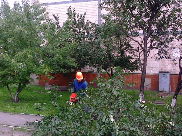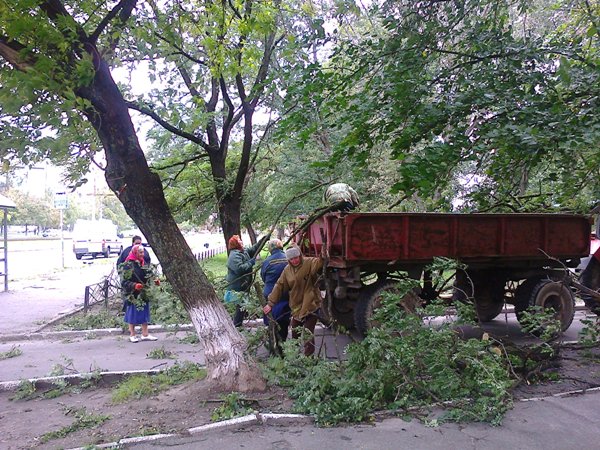 Шановні мешканці Святошинського району! Повідомляємо, що на прибудинкових територіях, що закріплені за КП РЕО-1, внаслідок сильних поривів вітру та дощу, були повалені дерева. Так, 24 вересня 2013року, садівником та робітниками з комплексного прибирання проводились роботи по прибиранню газонів та прибудинкових територій та вивезенню від повалених дерев за адресами вул. Симиренка 7, 13/1.