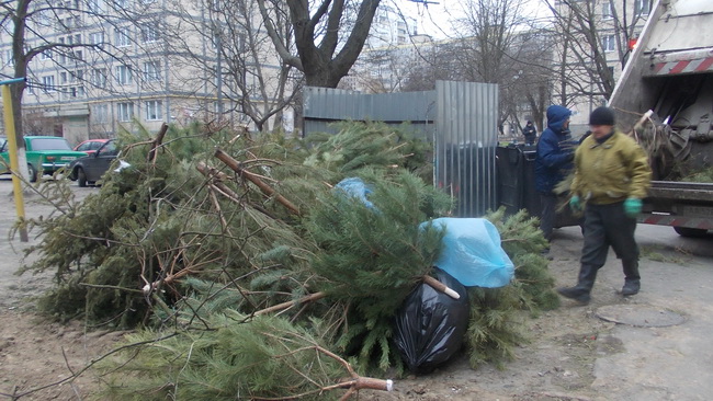 По закінченні новорічно-різдвяних свят комунальники щодня спостерігають збільшення обсягів новорічних ялинок, які мешканці багатоповерхівок масово виносять на смітник.