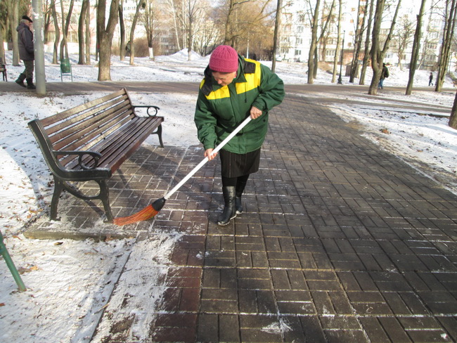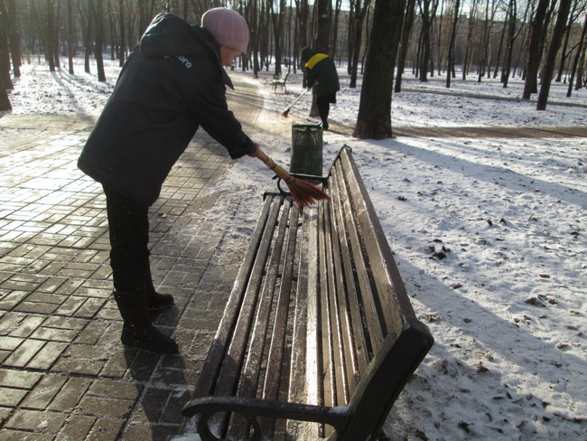 У 5 парках, 30 скверах та на бульварі Вернадського для безпечного пересування та відпочинку громадян пішохідні доріжки та сходи інтенсивно розчищалися, посипалися вручну та з автотранспорту піщано-сольовою сумішшю, якої за даний період використано 9,2 тонн. Наразі на підпорядкованих територіях КП УЗН розчищено всі пішохідні доріжки, сходи та очищені садові лави від льоду та снігу.