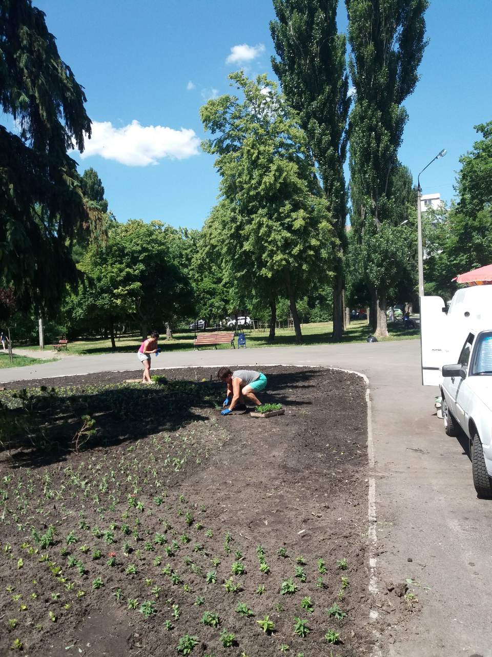 Працівники КП УЗН Святошинського району постійно дбають про санітарний стан та естетичний вигляд балансових територій. У парку імені Генерала Потапова висаджують дизайнерську клумбу, а на вулиці Семашка сумлінно продовжують поточний ремонт газонів.