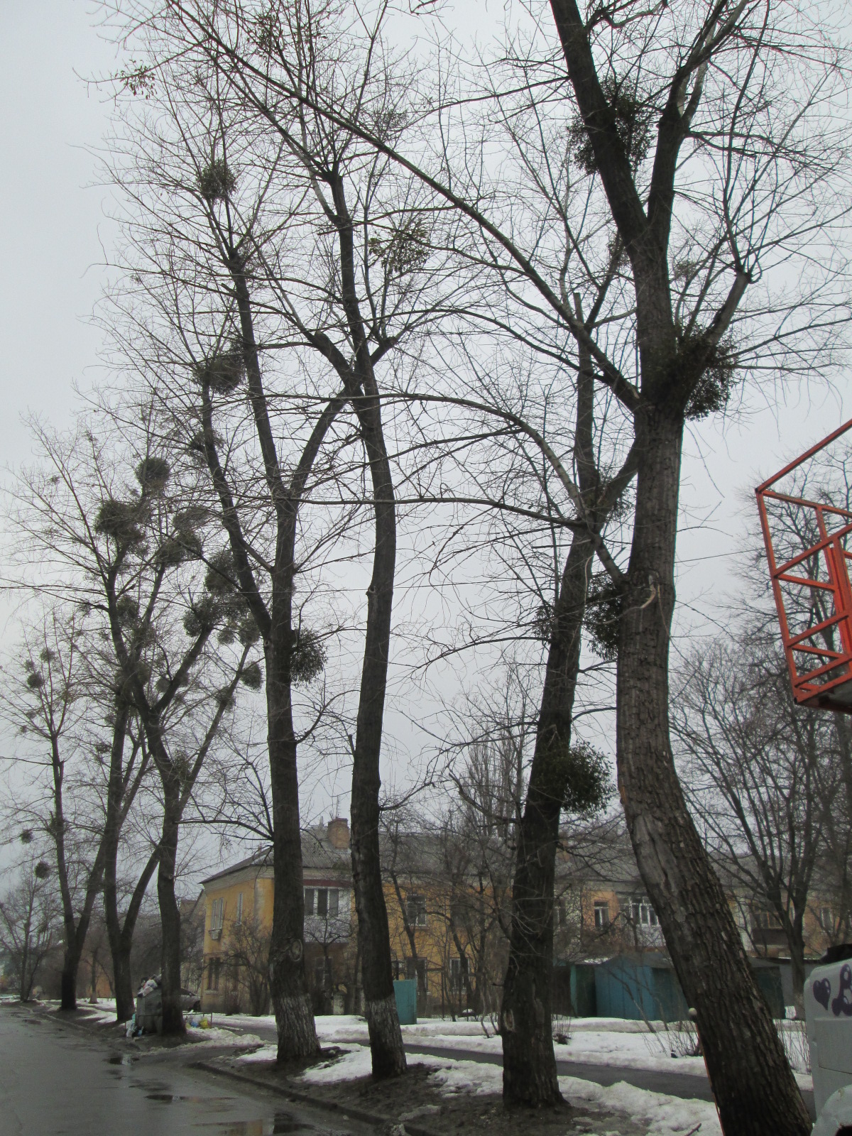 З метою збереження зелених насаджень на вулиці Перемоги, 7 - 9, понад 50 % яких уражені омелою та мають граничний біологічний вік (60 років), а також щоб вони не завдали шкоди здоров’ю та майну громадян, працівники КП УЗН Святошинського району провели глибоке кронування дерев з паралельним видаленням омели. Джерело: КП УЗН.